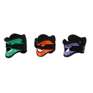 Collari cervicali a 2 pezzi (parte anteriore e parte posteriore) realizzati in polietilene e rivestimento interno in E.V.A.(etilene vinil acetato) lavabile fissato con rivetti in plastica. Dotati di foro centrale per tracheotomia e chiusure in velcro regolabili. Sono latex free.