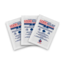 GERMO RELIEF è una pratica salvietta imbevuta di soluzione acquosa con ammoniaca al 4% che svolge un’azione calmante immediata.