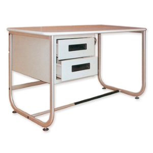 Scrivania con 2 cassetti laterali con chiave e struttura robusta in tubo ovale verniciata con polveri epossidiche, grigio metallizzato.