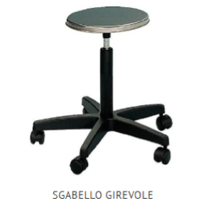 SGABELLO C/BASE CON RUOTE Altezza regolabile da 43 a 55 cm.