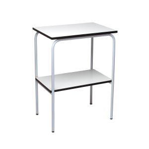 Tavolino portaferri con telaio in metallo verniciato bianco e 2 ripiani in laminato.